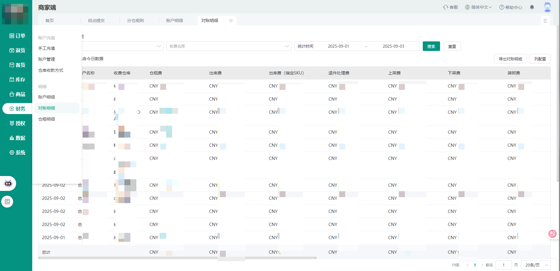 海外仓财务统计和对账环节依赖人工整理出入库单据、物流费单据等,不仅易出现数据遗漏、计算错误,还需要耗费大量时间核对货主、供应商、物流商之间的账目,对账周期往往长达1-2周。使用海外仓WMS,业财一体,系统会根据设置好的计费规则自动记录每一笔仓储作业数据,如入库市场、入库数量、卸货数量、出库数量、物流费用等,并按照预设的规则自动生成财务账单。
