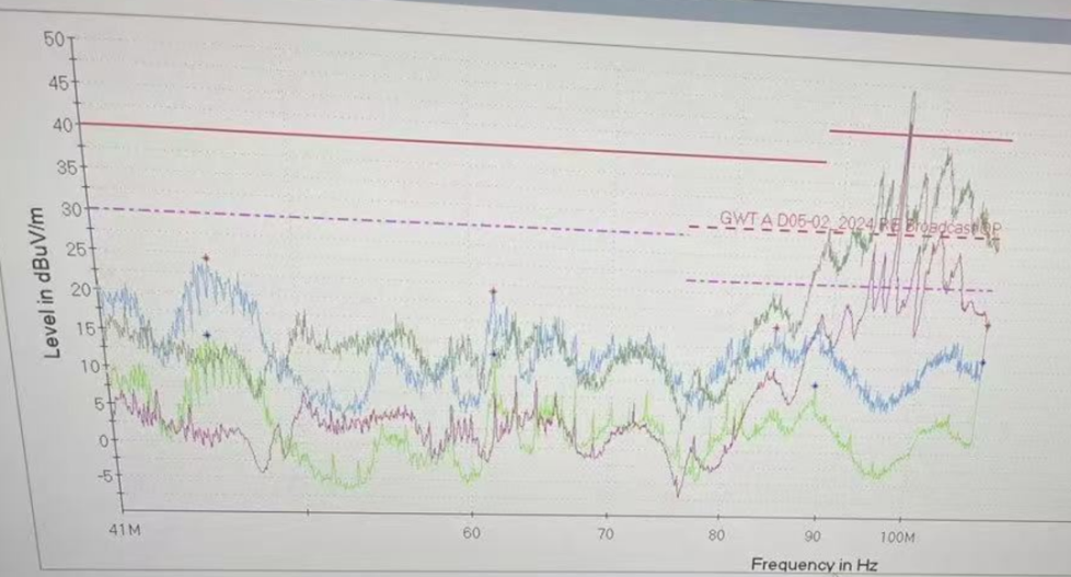 2.由于超标频点在100MHz附近,我们可以确认的是干扰路径是线束本身,至于是哪根线束,需要通过拔除线束进行判断。