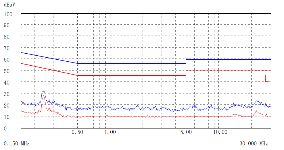 由数据可知,对于该电路而言,我们只是调整了低通滤波电路电容的位置,将C-L滤波调整为LC滤波,测试数据结果就有非常明显的变化。说明在实际应用中,当面对低频传导超标问题时,在判定噪声路径之后,可以多尝试不同的滤波电路,快速试验出有效的滤波方案。