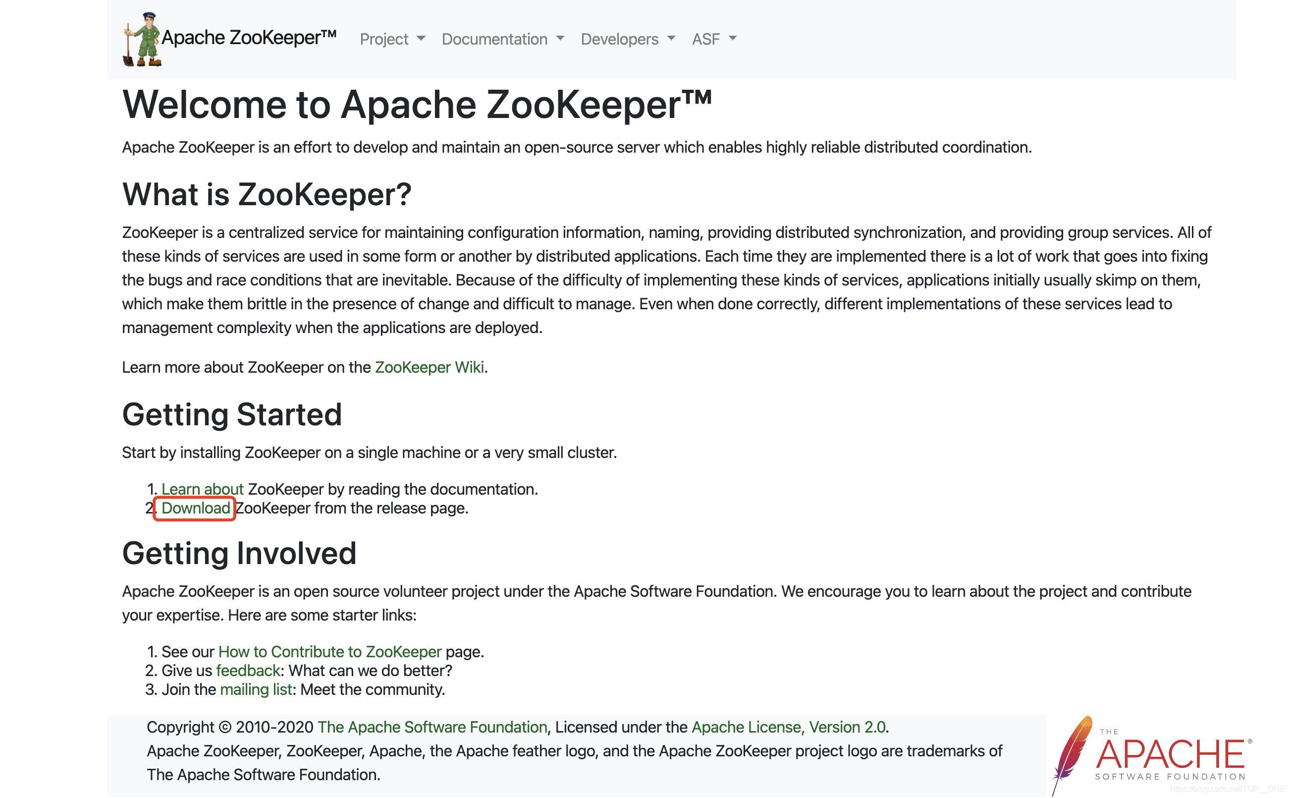 zookeeper官网:https://zookeeper.apache.org/ ----》download---->选择版本号------》选择镜像,下载,然后上传到服务器中