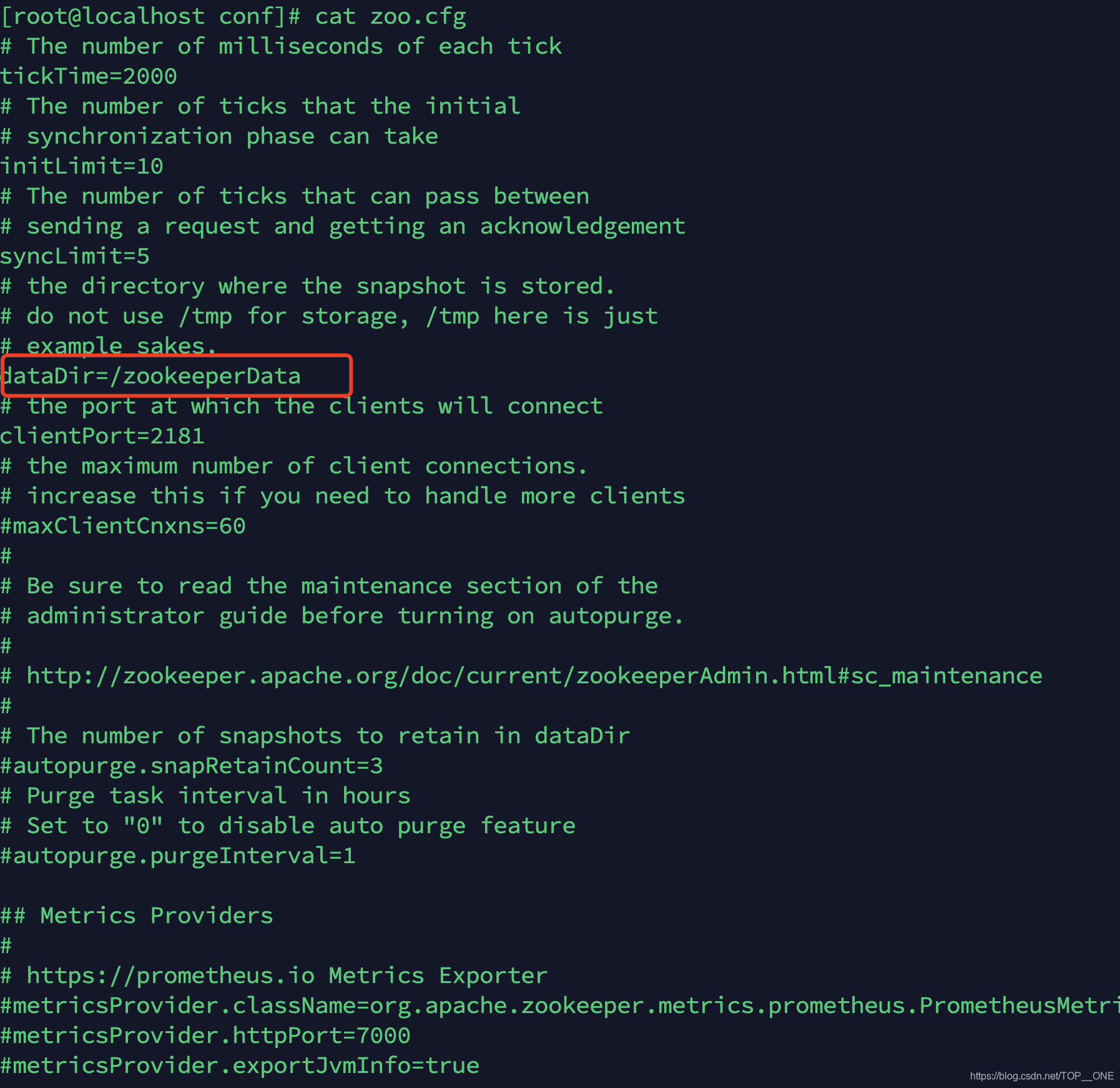 [root@localhost conf]# cp zoo_sample.cfg zoo.cfg
