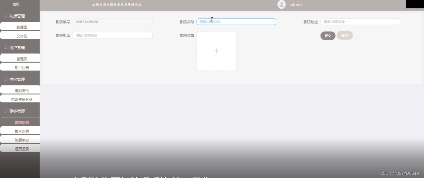 影院信息管理:对影院信息进行维护,添加、删除、修改信息。