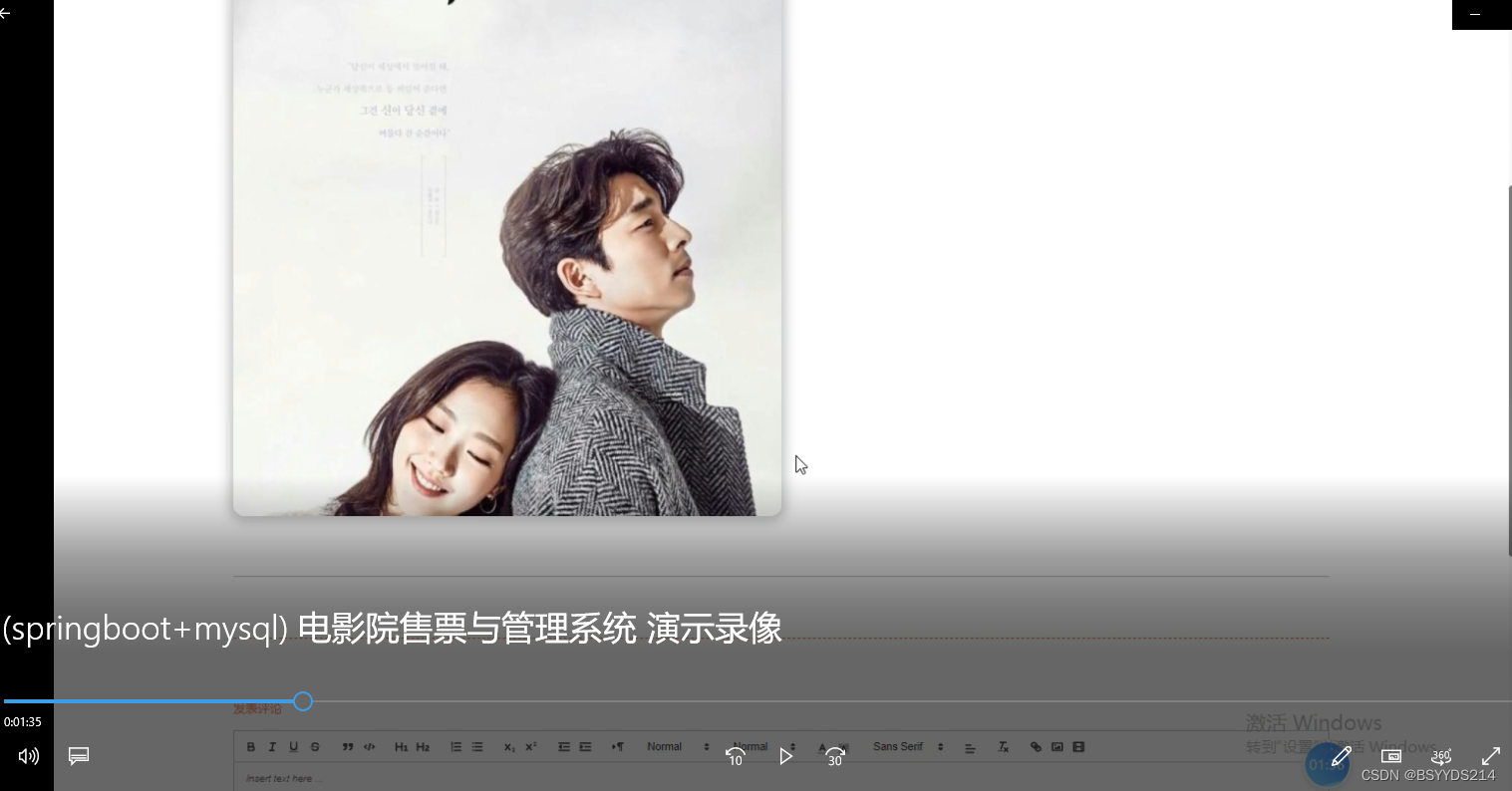 电影院售票与管理系统主要功能模块包括用户管理、影院信息、影片信息、购票中心、退票记录,采取面对对象的开发模式进行软件的开发和硬体的架设,能很好的满足实际使用的需求,完善了对应的软体架设以及程序编码的工作,采取mysql作为后台数据的主要存储单元,采用Java语言、springboot技术、Ajax技术进行业务系统的编码及其开发,实现了本系统的全部功能。本次报告,首先分析了研究的背景、作用、意义,为研究工作的合理性打下了基础。针对电影院售票与管理系统的各项需求以及技术问题进行分析,证明了系统的必要性和技术可行性,然后对设计系统需要使用的技术软件以及设计思想做了基本的介绍,最后来实现电影院售票与管理系统和部署运行使用它。