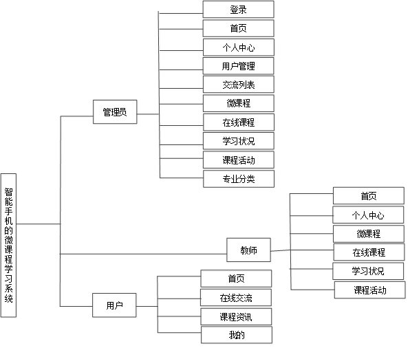 系统架构图属于系统设计阶段,系统架构图只是这个阶段一个产物,系统的总体架构决定了整个系统的模式,是系统的基础。基于智能手机的微课程学习系统的整体结构设计如图4-2所示。