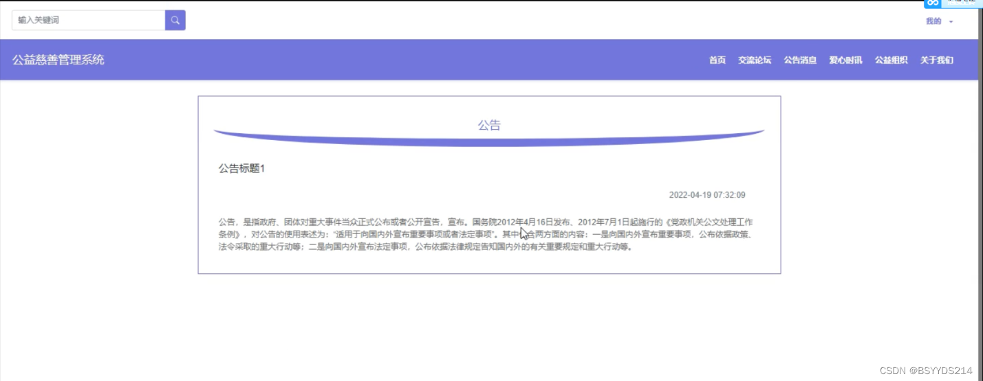 关键词:springboot技术;MYSQL;公益慈善管理系统