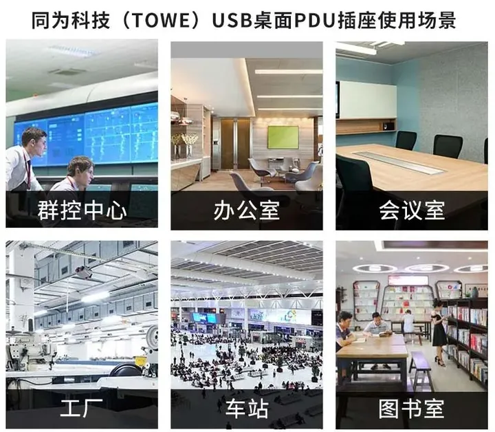 同为科技(TOWE)USB分控桌面PDU插座应用十分广泛,不仅是家用,在很多餐厅、咖啡厅、商场、车站、图书馆等公共场所以及办公场所、车间工厂都能看到它的身影:(1)居家房屋:客厅、卧室、书房、阳台,都适合安装同为(TOWE)USB插座,方便平时各种生活电器、数码电器充电;(2)公共场所:餐饮店、美容店、咖啡厅、车站、图书馆等,只要是消费者需要体验的,长时间停留的业态商铺,都适合安装USB插座,给顾客提供便捷与免费的充电服务;(3)办公环境:公司会议室、接待室,经常会遇到客户忘记带充电器的情况,只需要提供数据线,客户就可以充电应急;(4)工业生产:批量刷机测试、设备充电,更快更稳定地满足业务需求。