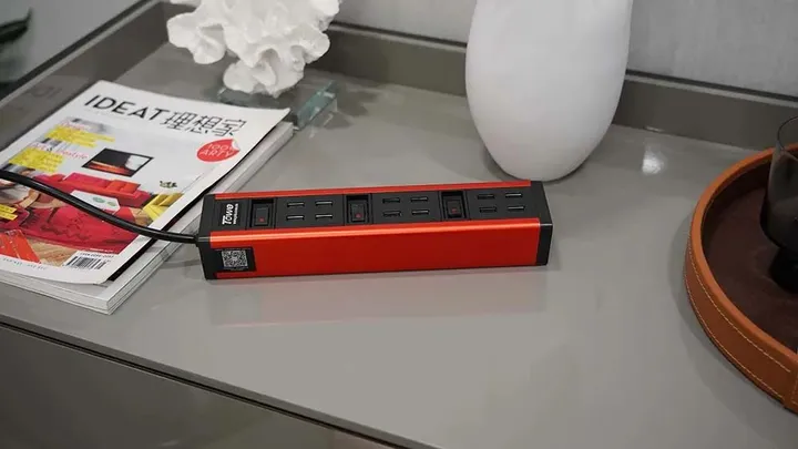 外观上,同为(TOWE)USB桌面PDU插座延续了同为科技(TOWE)桌面PDU一贯典雅、时尚的风格,有中国红、高雅黑、晶银白三色可供消费者选购。插座上方带有同为科技(TOWE)专属LOGO标志,高强度铝合金材质外壳具有防火、防摔、防压、防腐蚀和防触电等特点,3*1.0mm²电源线导电更稳更安全。精密的布局——各个插孔之间的大孔距、智能分流、过充保护、过载保护开关、3*4USB口分工管理,方便用户的使用,进一步提升插座的安全系数。