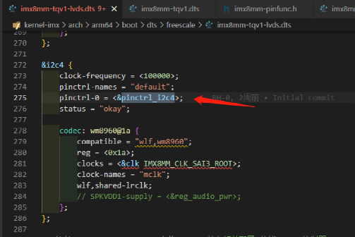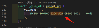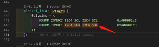 ①在“imx8mm-tqv1.dts”设备树中搜索“I2C4_SDA”,可以发现引脚有两处引用: