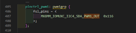 将“pinctrl_pwm1”节点下的宏定义替换为刚刚找到的宏定义: