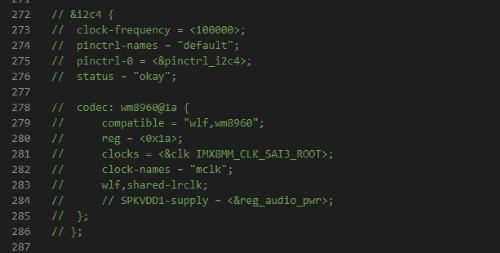 在“imx8mm-tqv1-lvds.dts”文件中,找到“pinctrl_i2c4”节点的引用,但并未在此设备树文件或其他设备树文件中找到“pinctrl_gpio_wlf”的引用,说明只有“pinctrl_i2c4”配置生效,现在引脚被复用为I2C4的SDA功能: