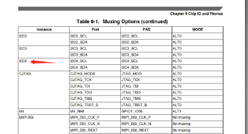 本例以I2C4引脚复用配置举例,在IMX8MM上,通过查看芯片手册得知,每一路硬件I2C只能用唯一的特定的引脚,无法复用成其他引脚,但当其引脚被其他功能占用时,就需要先关闭占用引脚的功能。