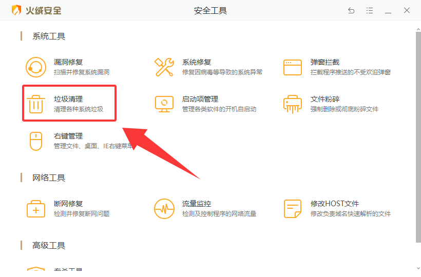 下个火绒安全卫士(主要是因为火绒里面没啥广告),点击这里的「安全工具」