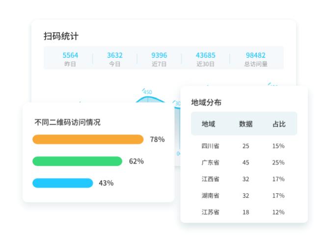 量化线下营销: 可以统计二维码的总扫描量、独立访客数、扫描时间分布、地理位置分布、设备类型等。