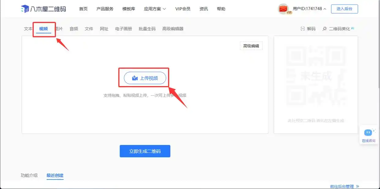 接着,在官网首页找到二维码生成的入口,点进去。在生成页面里,有个专门上传视频的地方,你点击选择文件,从你的电脑里找到要转的宠物训练视频,选好后点击上传。