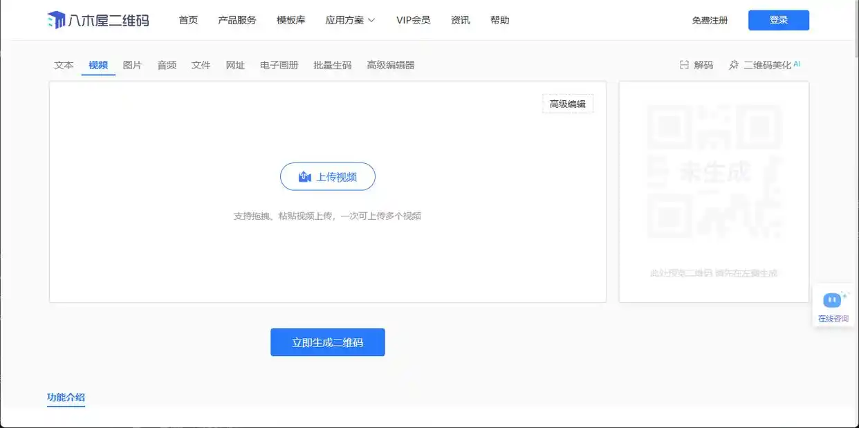 首先,打开八木屋官网。你可以直接搜 “八木屋二维码”,或者直接点 https://www.bamuwu.com/video 。打开网站后,找到「视频转二维码」模块。