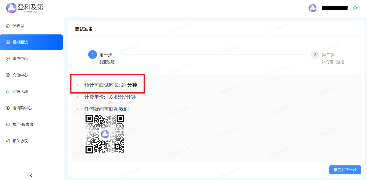- 接受面试: 如果时长没问题,点击 接受并下一步 按钮。
