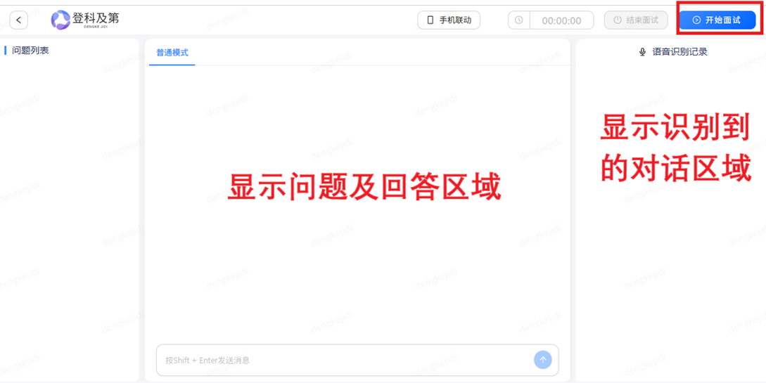 - 理解面试界面: 面试开始后,你会看到三个主要区域: