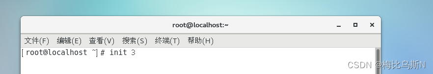 将运行级别由图形模式(5)切换为字符模式(3),可执行“init 3” 命令。再要使用图形界面时,执行““init 5” 切换回去。