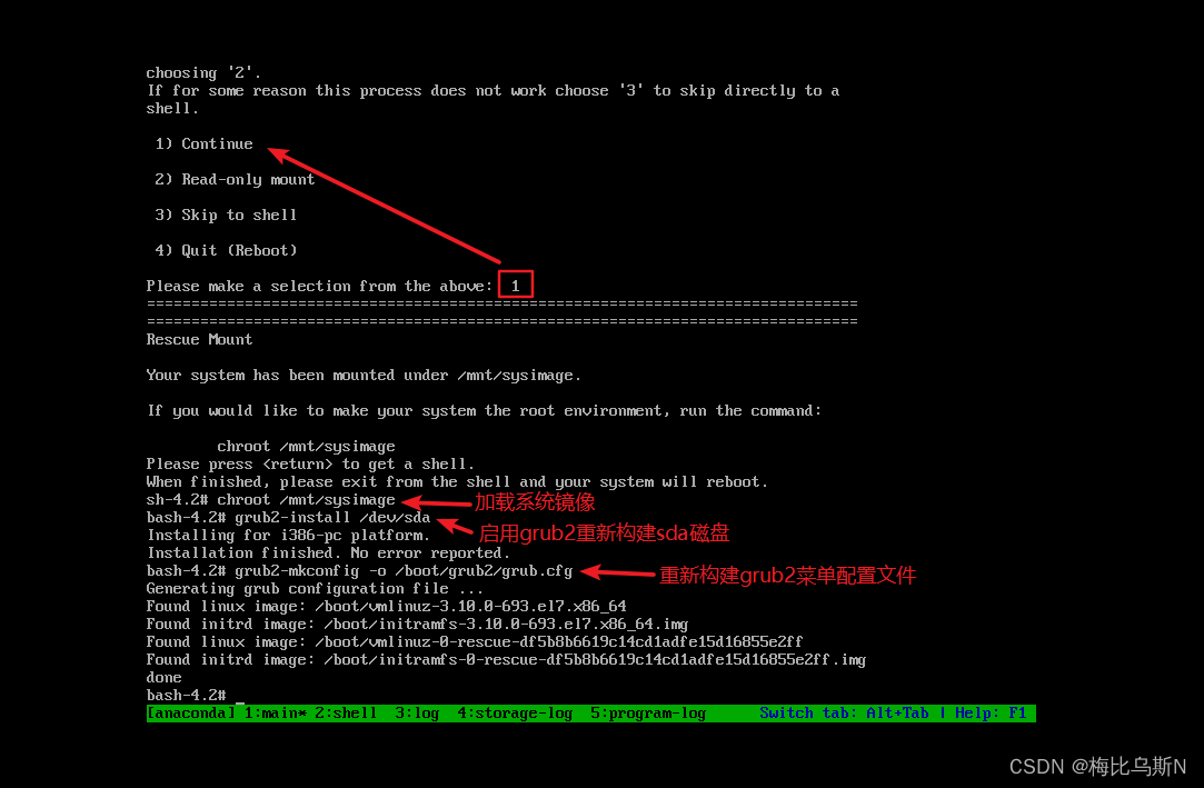 完成恢复操作之后,执行“exit” 命令退出临时shell环境系统将会自动重启。