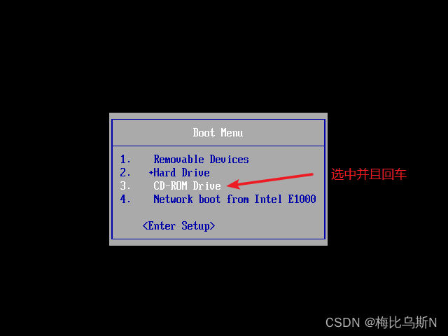 这时需要重启客户机,在vmware这个图标开始读条的时候快速按下esc键,进去启动界面。