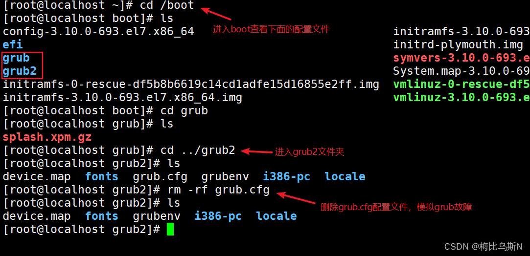 在虚拟机上,先删除配置文件,制作模拟故障,使得linux主机无法正常运行。
