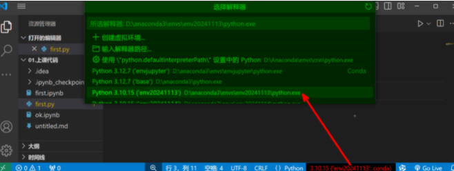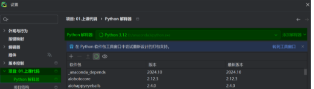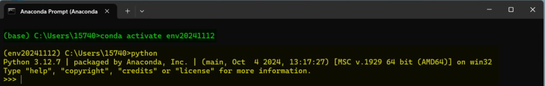 环境切换到了env20241112,进入python后可看到Python版本是我们指定的3.12