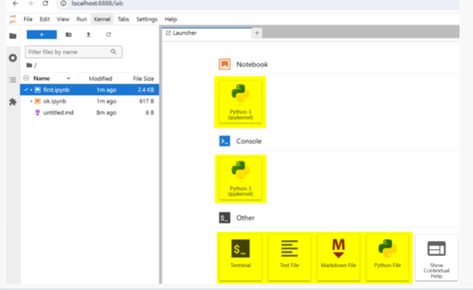 新建一个ipynb文件,可以进行文件名修改、写代码块、笔记块等