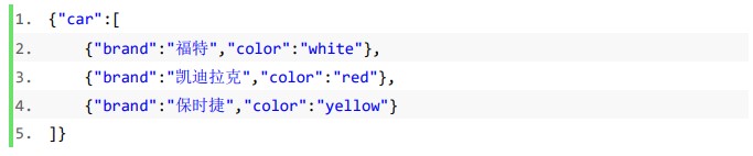 例:对象“car”是一个数组,包含三个对象,每个对象为汽车的信息