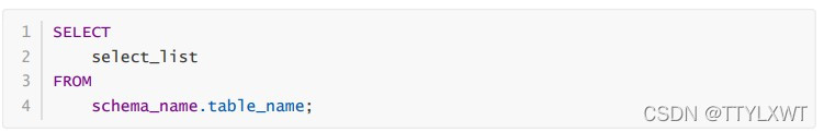 2、其次, schema_name.table_name 是在 FROM 子句中指定源表及其模式名称。