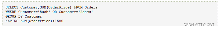 在 SQL 中增加 HAVING 子句原因是,WHERE 关键字无法与合计函数一起使用。