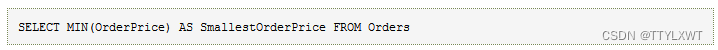 MIN 函数返回一列中的最小值。NULL 值不包括在计算中。