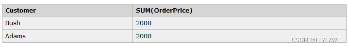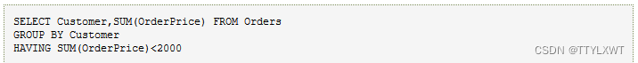现在,我们希望查找订单总金额少于 2000 的客户。