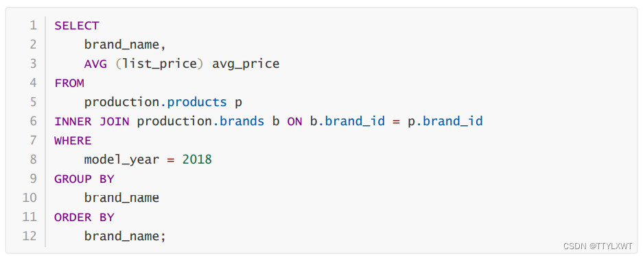 以下语句使用 AVG() 函数返回型号年份为 2018 年的所有产品的平均价格:
