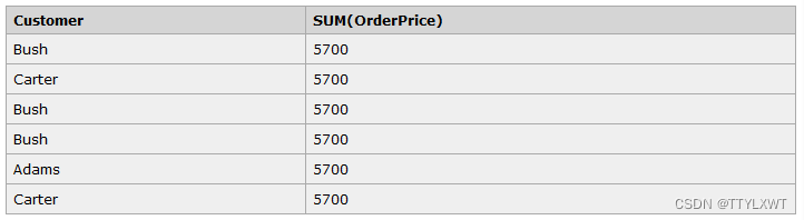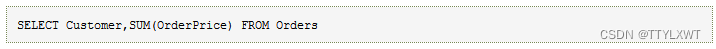 那么为什么不能使用上面这条 SELECT 语句呢?解释如下:上面的 SELECT 语句指定了两列(Customer 和 SUM(OrderPrice))。"SUM(OrderPrice)" 返回一个单独的值("OrderPrice" 列的总计),而 "Customer" 返回 6 个值(每个值对应 "Orders" 表中的每一行)。因此,我们得不到正确的结果。不过,您已经看到了,GROUP BY 语句解决了这个问题。