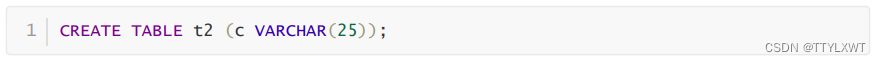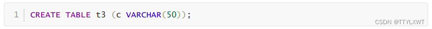 以下语句创建一个新表,其中一列的数据类型为 VARCHAR(10) :