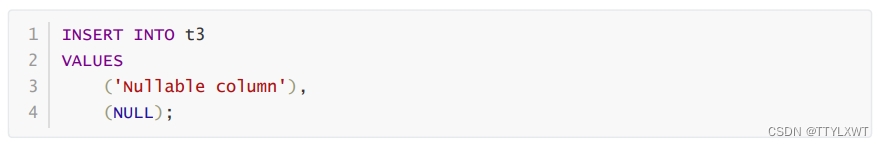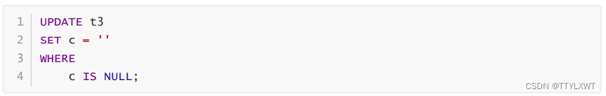 如果要将 NOT NULL 约束添加到列 c ,则必须首先将 NULL 更新为非null,例如: