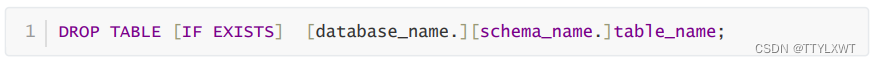 其次,指定创建表的数据库的名称以及表所属的模式的名称。数据库名称是可选的。 如果不指 定, DROP TABLE 语句将删除当前数据库中的表。