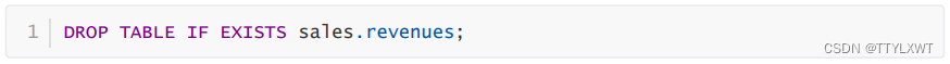 在此示例中, revenue 表不存在。 因为它使用 IF EXISTS 子句,所以语句成功执行,但是没有表可以 删除。