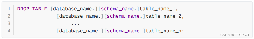 SQL Server允许使用单个 DROP TABLE 语句来一次删除多个表,如下所示: