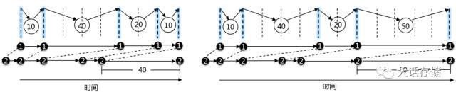 当上级时延>下一级时延时: