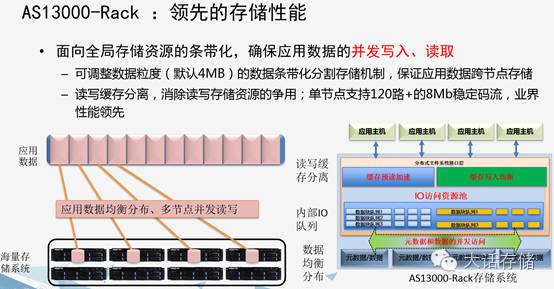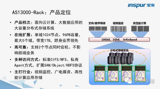 该用户原先使用了某开源分布式存储系统,但是由于其性能已经无法满足业务要求,后升级到了浪潮 AS13000-Rack 大规模机架式分布式存储系统。 AS13000 非常有利于满足高性能计算场景的高并发需求。