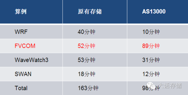 采用了浪潮 AS13000-Rack 系统之后,系统的整体性能得到了大幅提升,但是美中不足的是,在 FVCOM 这一步计算中, AS13000 的性能却落后了原有存储系统将近一半,而在其他各项计算中,均大幅领先。按理说,如果单看最后的总成绩, AS13000 的表现已经是让人足够满意了,但是这项标红的落后项,对于拥有追求完美情怀的工程师而言,那就是失败,是不可容忍的。