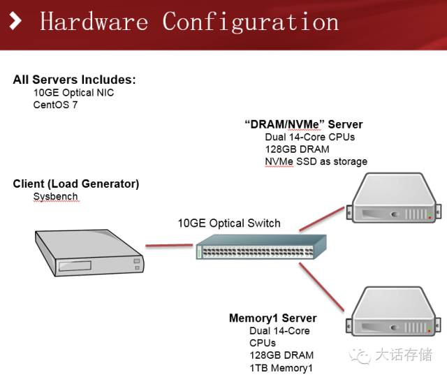 再来看一下更为广泛的场景,MySQL数据库场景下的对比测试。传统配置使用双路服务器,128GB内存,800GB的NVMe SSD;M1配置则采用128GB内存+1TB的M1。
