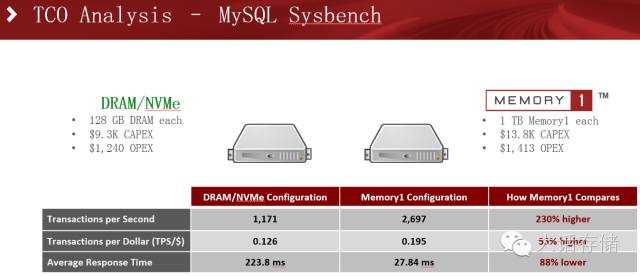在高并发量领域,比如互联网,如今大量被使用的MySQL Server和Memcached集群,在成本领域也饱受困扰,大家都在寻找如何能够在尽可能小的集群规模下做更多的事情,也就是提升部署密度,用一台服务器部署更多应用实例,没有什么比直接降低服务器整机台数更能降低成本的了,哪怕在现有服务器内增加一些部件。