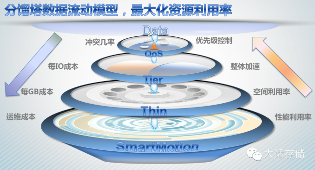 搅拌: 最后一层便是SmartMotion智能布局层,数据最终从内存存储到磁盘,通过优化布局来达到最佳IO性能,这一层相当于搅拌器,搅拌让反应物混合的更加均匀,大大加速反应速度。图中的水波纹表示不同的逻辑卷拥有不同的布局,完全根据业务来优化布局,而不是清一色不加区别的对待。