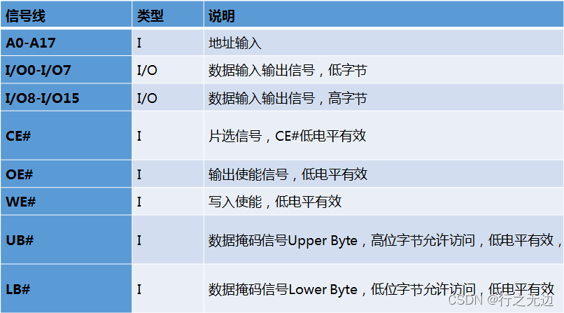 (3) 若是要进行读操作,则控制读使能信号OE#表示要读数据,若进行写操作则控制写使能信号WE#表示要写数据;