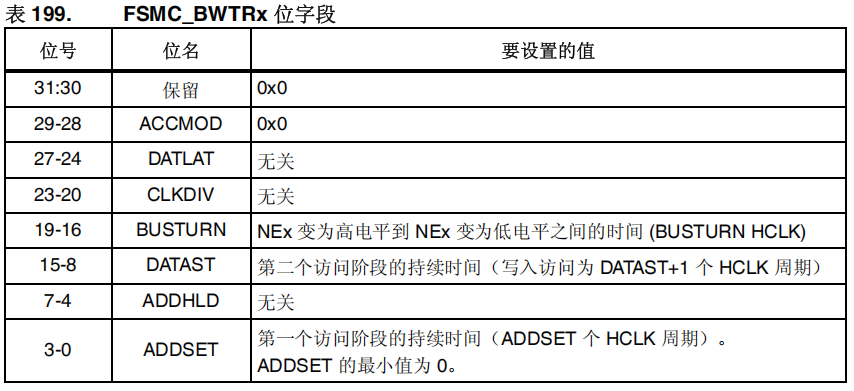 FSMC_ReadWriteTim.AddressHoldTime=0x00; //地址保持时间(ADDHLD)模式A未用到