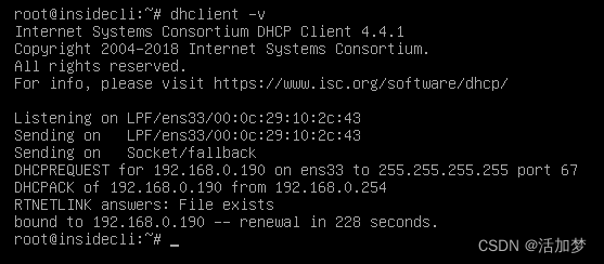 测试:InsideCli(自动获取固定ip地址)