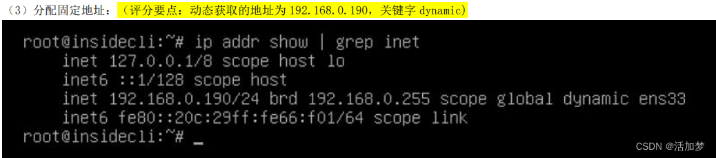 - 为 InsideCli 分配固定地址为 192.168.0.190/24;