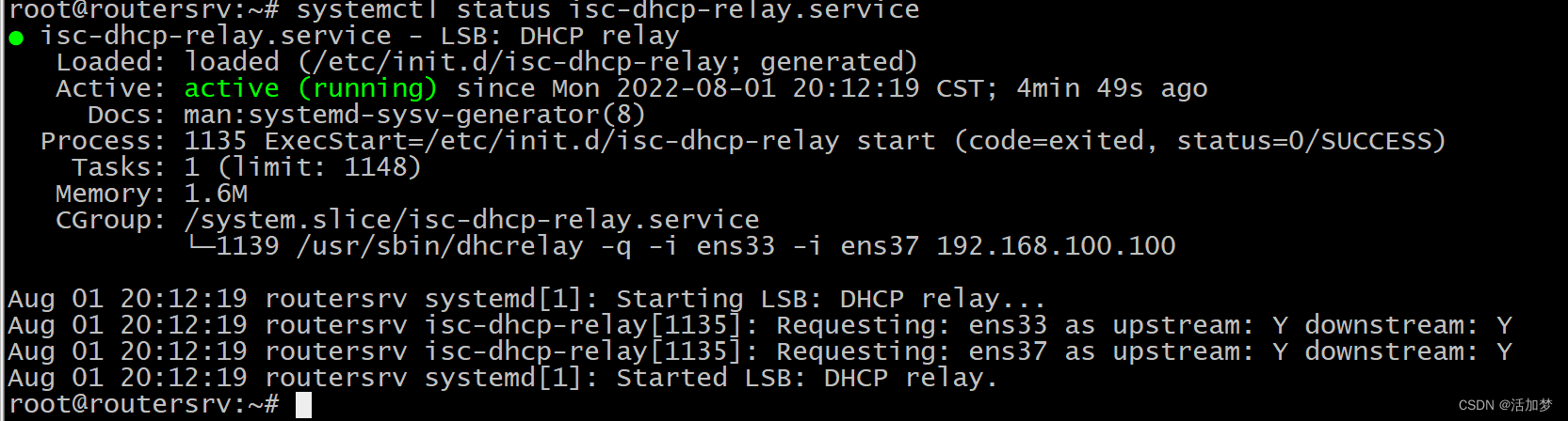 root@routersrv:~# systemctl restart isc-dhcp-relay.service